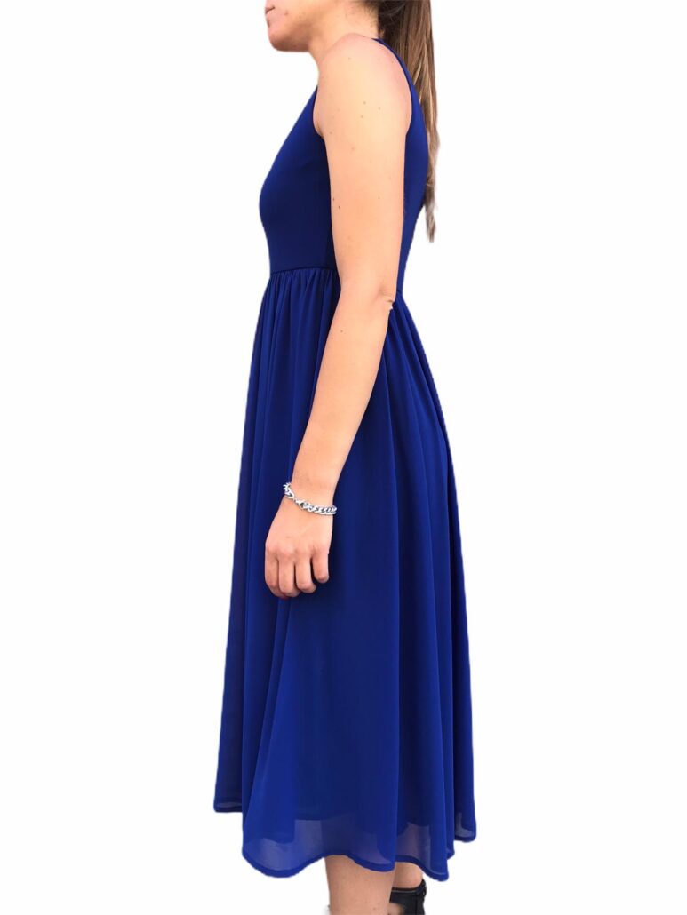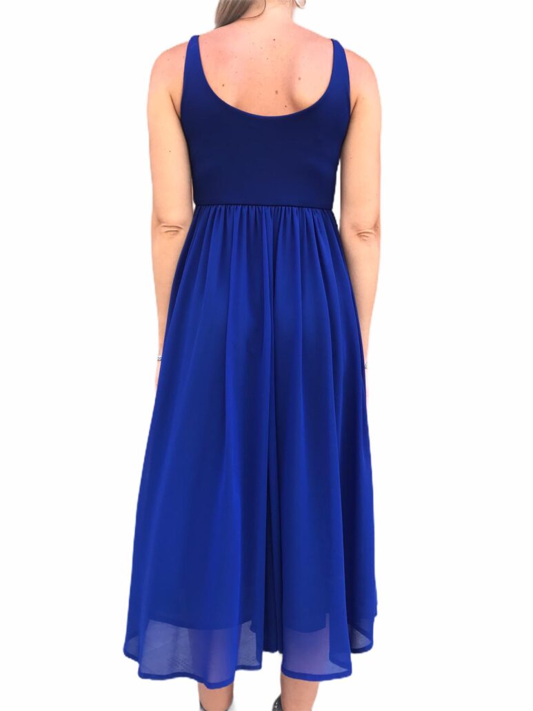 abito donna blù cobalto,tessuti morbidi ,linea impero,bretelle spalla media ,abito elegante e casual a seconda dicome si correda di calzature o accessori 94% poliestere 6% elastan