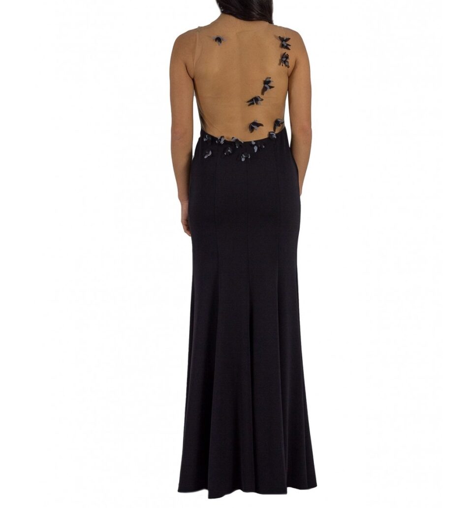 abito lungo con bretelle in tulle