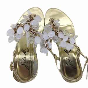 sandalo donna realizzato in vera pelle , applicazioni in resina , suola in cuoio , tacco 3,5 cm