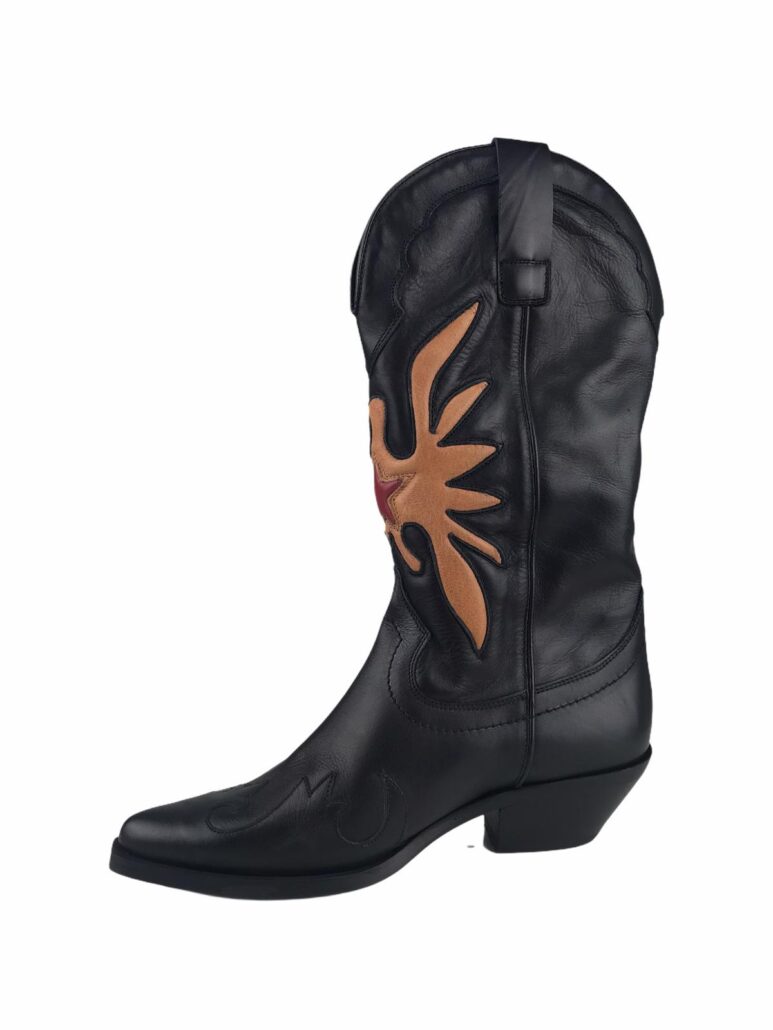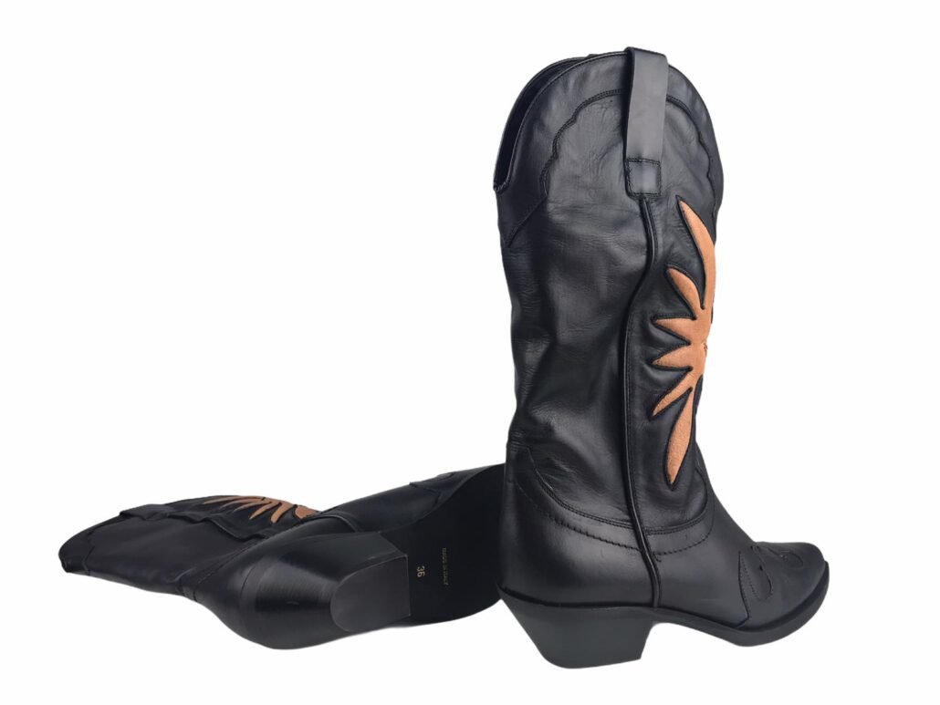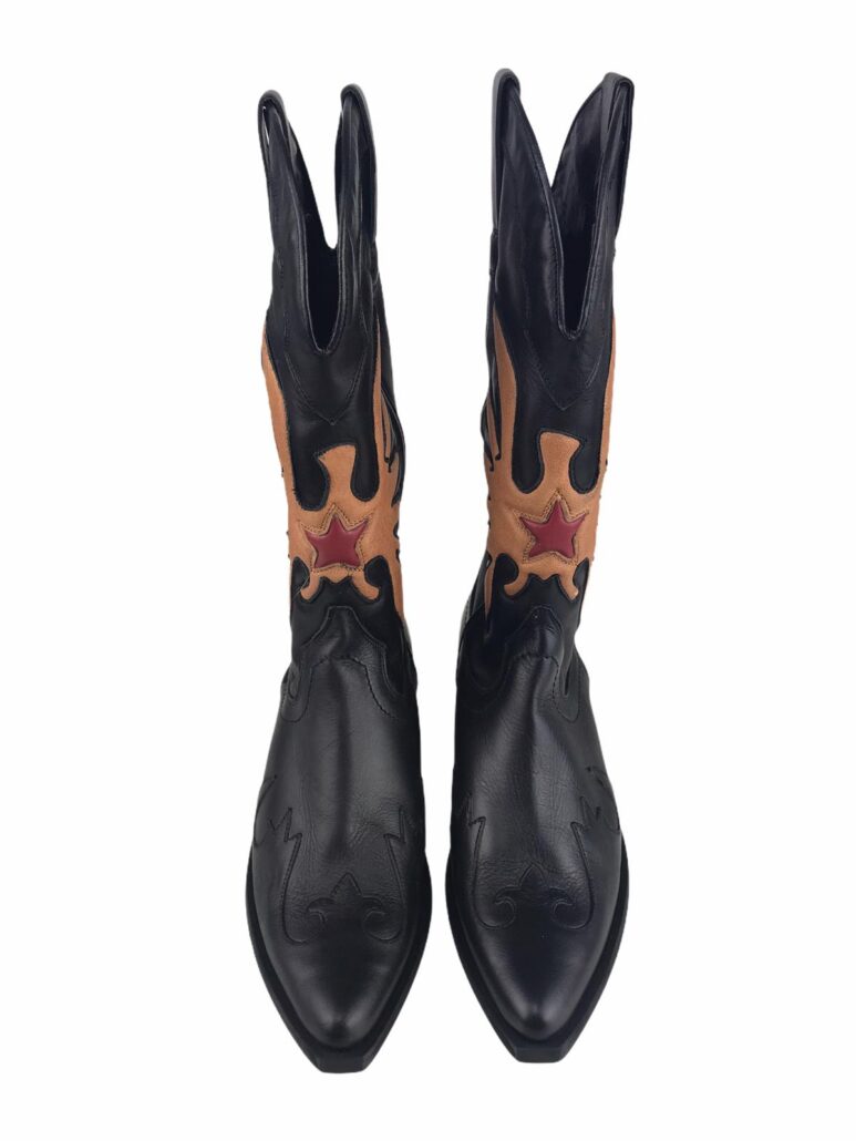 stivale nero in vera pelle,altezza gambale 32 cm,punta affusolata ,tacco 50mm