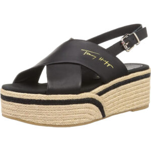 TOMMY HILFIGER espadrillas nera logo gold ,