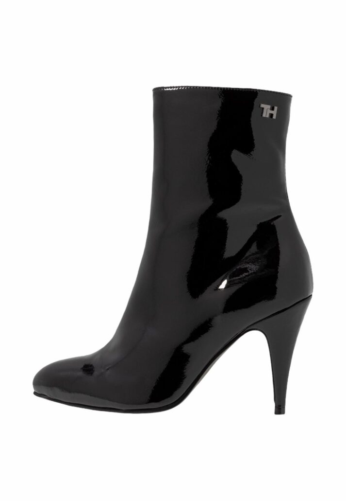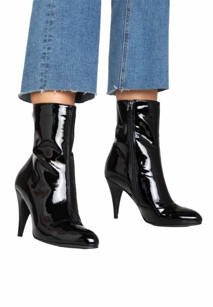 stivaletto in vernice nera tacco comodo,punta arrotondata,cerniera laterale per facilitare la calzata