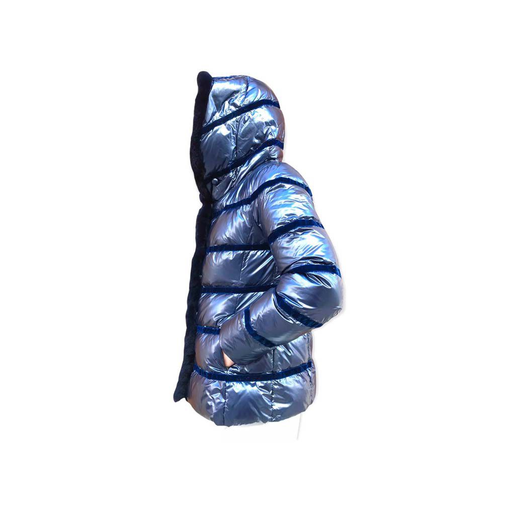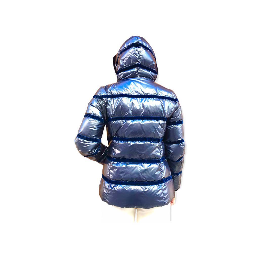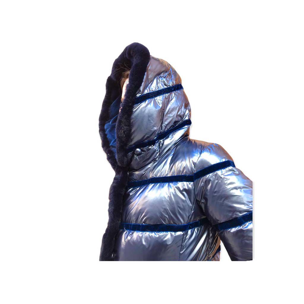 VIOLANTI giaccone blu in piuma d’oca ultraleggera