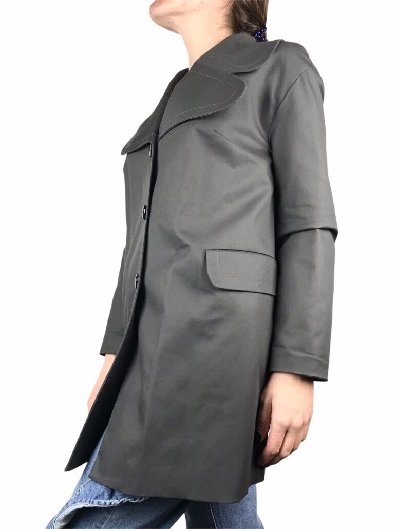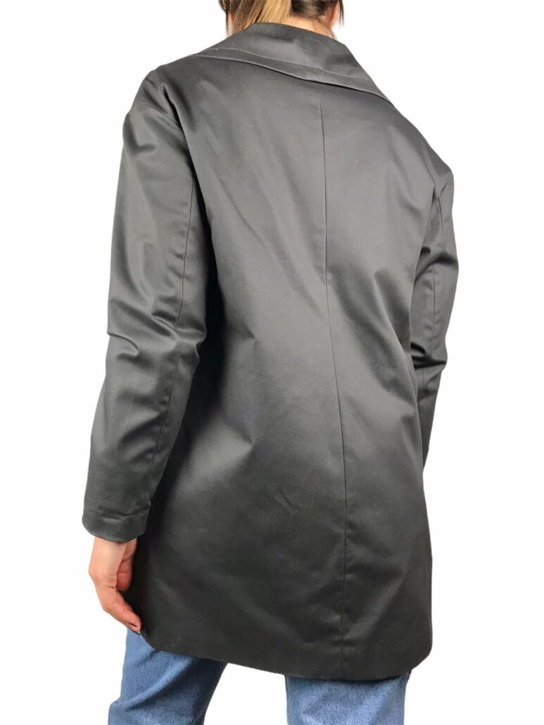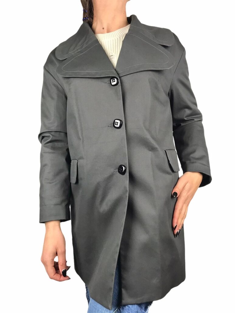 trench donna realizzato in cotone ,fodera il poliestere ,taglio a campana ,bottoni nero lucido ,facile abbinare questo trench a qualsiasi outfit ,grigio canna di fucile petto a lancia punta tonda