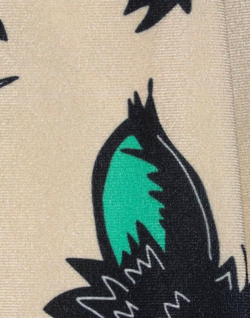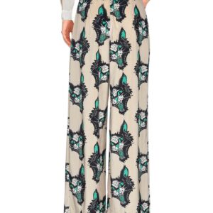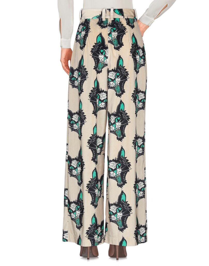 Dettagli: ciniglia, pieghe, fantasia multicolore, vita alta, comfort fit, gamba ampia, zip e bottoni, multitasche